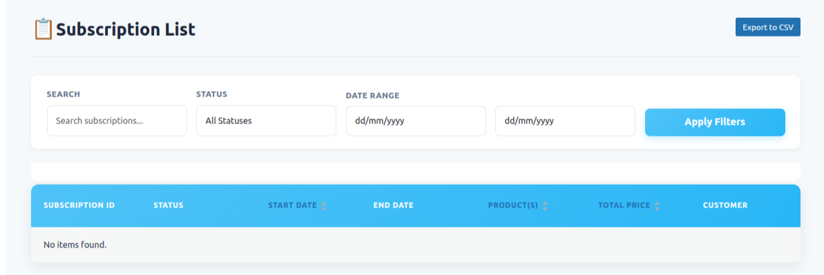 The All Subscriptions tab allows you to easily view and manage all active and past subscriptions. This feature provides a convenient way to track subscriptions, update details, and manage recurring orders efficiently within your WooCommerce store.